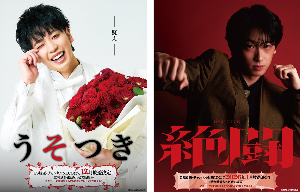 2025年12月には、第1弾として「ネス単独公演「うそつき」ライブ放送 & アフタートーク」、2026年1月には、第2弾として「龍LIVE「絶闘」ライブ放送 & アフタートーク」をそれぞれTV初放送します!2か月にわたって、ファン必見のコンテンツをお届けいたします。